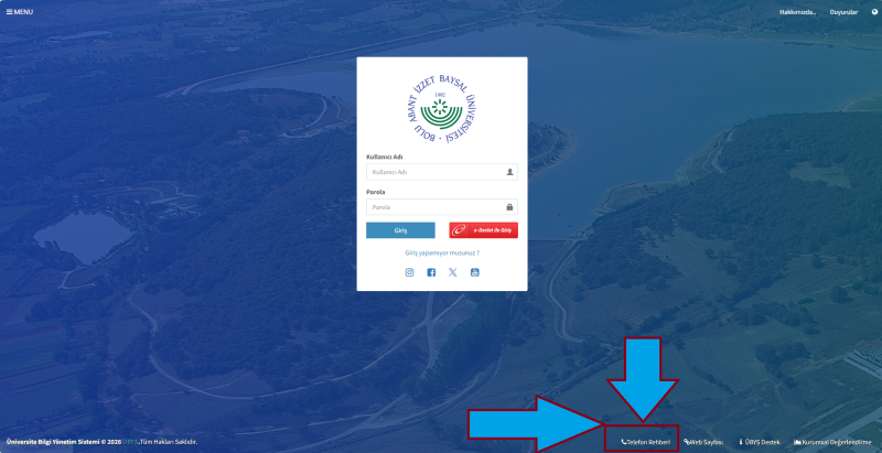 ubys.ibu.edu.tr web sayfası açıldığında sağ alt köşede yer alan "Telefon Rehberi" kısayolu kullanımdadır.